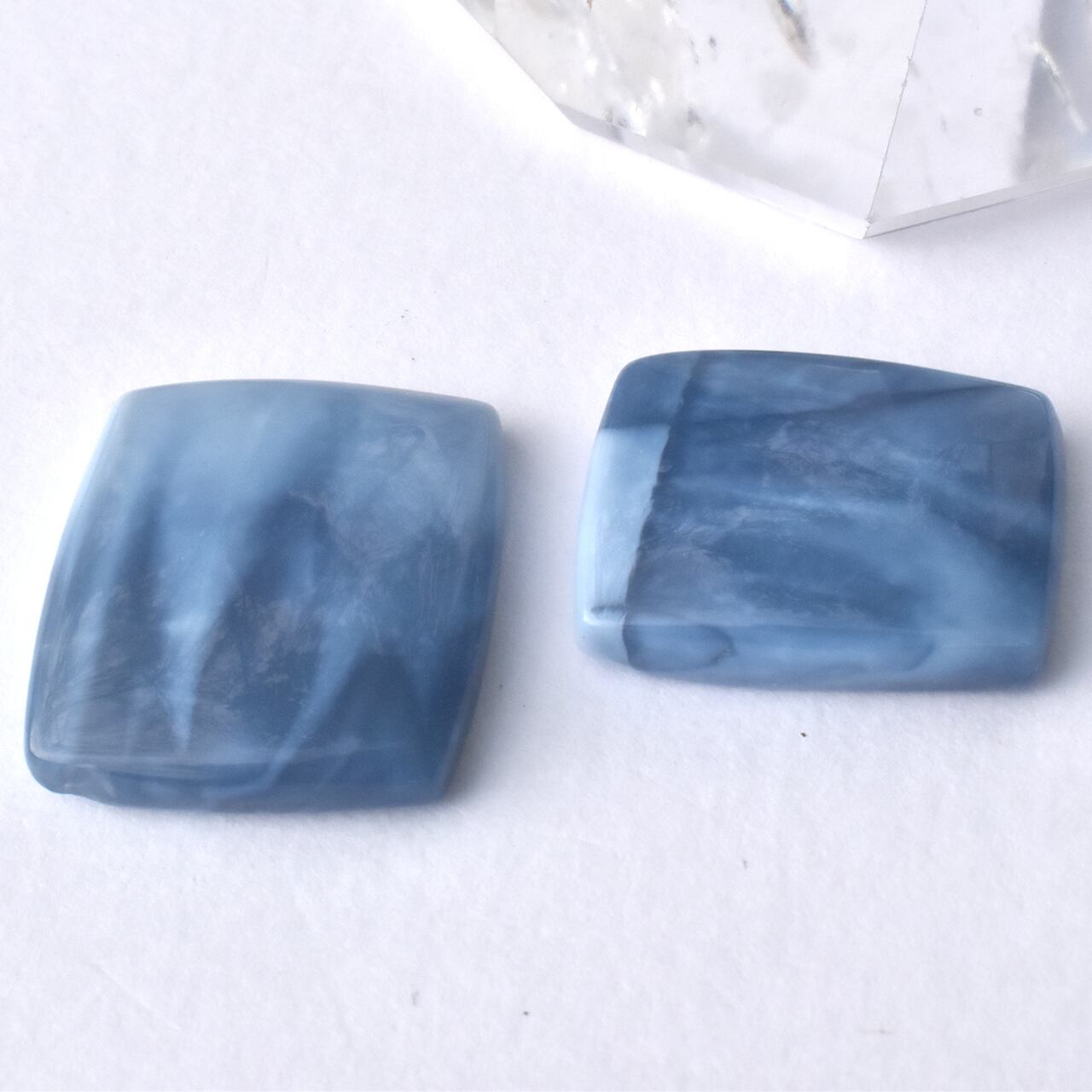 これらは、柔らかな光を宿す天然のブルーオパールのカボションです。