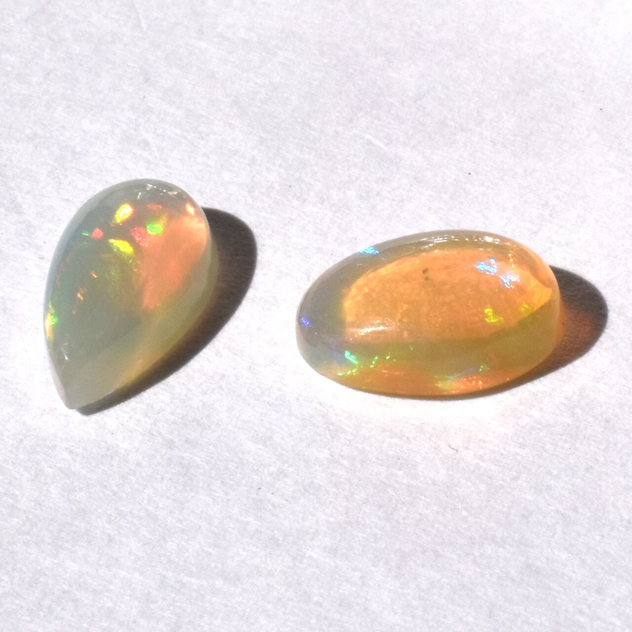 これらは、多彩な虹のような輝きを放つ天然オパールのカボションです。