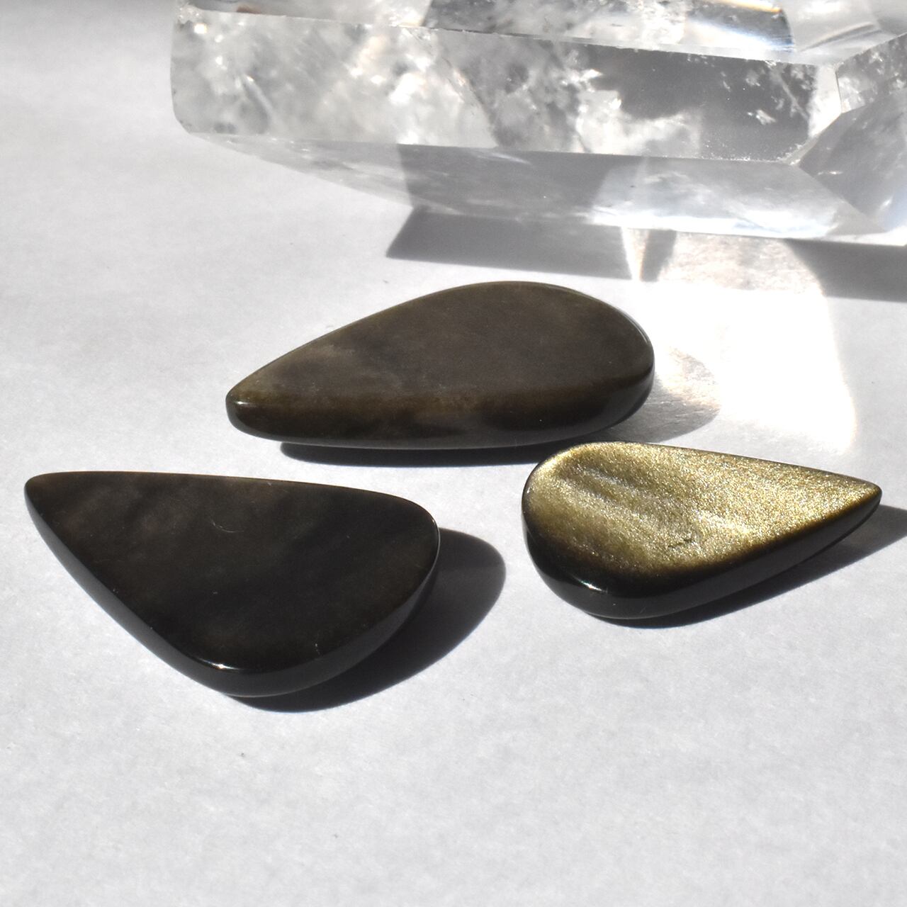 これらは、天然のゴールデンオブシディアン(黒曜石)のカボションです。