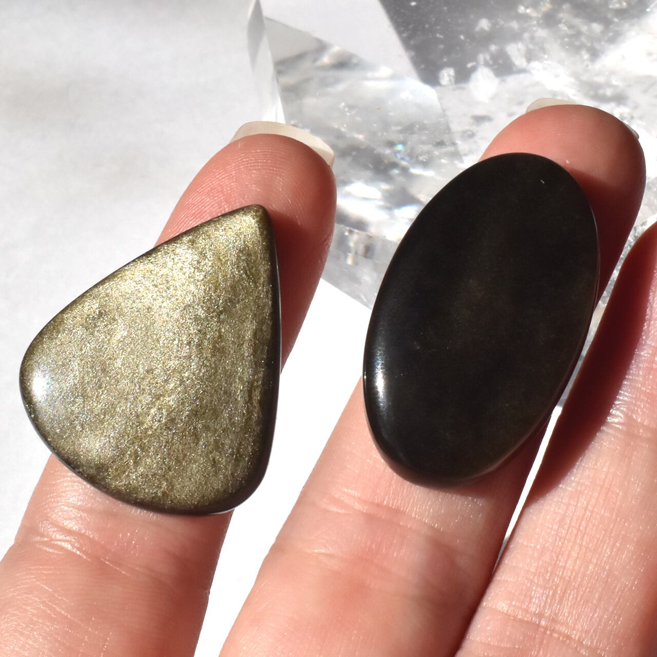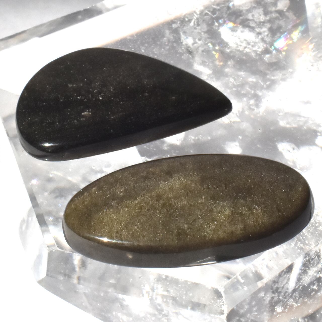 これらは、天然のゴールデンオブシディアン(黒曜石)のカボションです。
