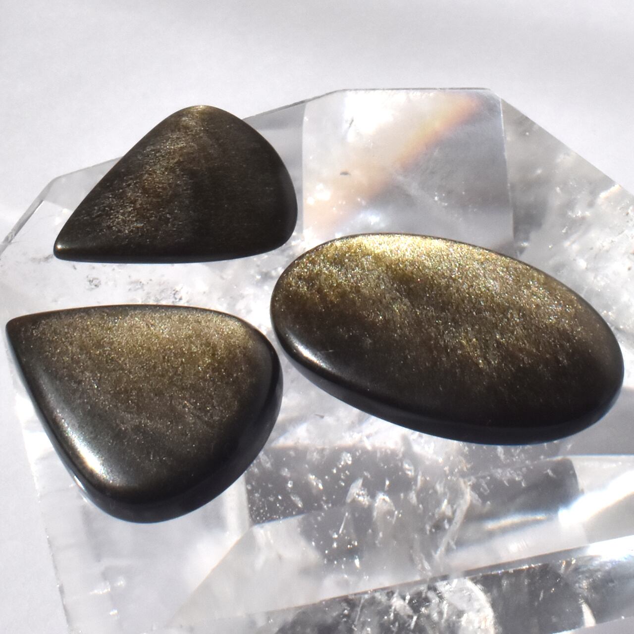 これらは、天然のゴールデンオブシディアン(黒曜石)のカボションです。
