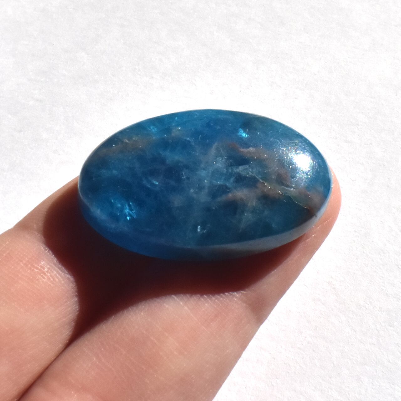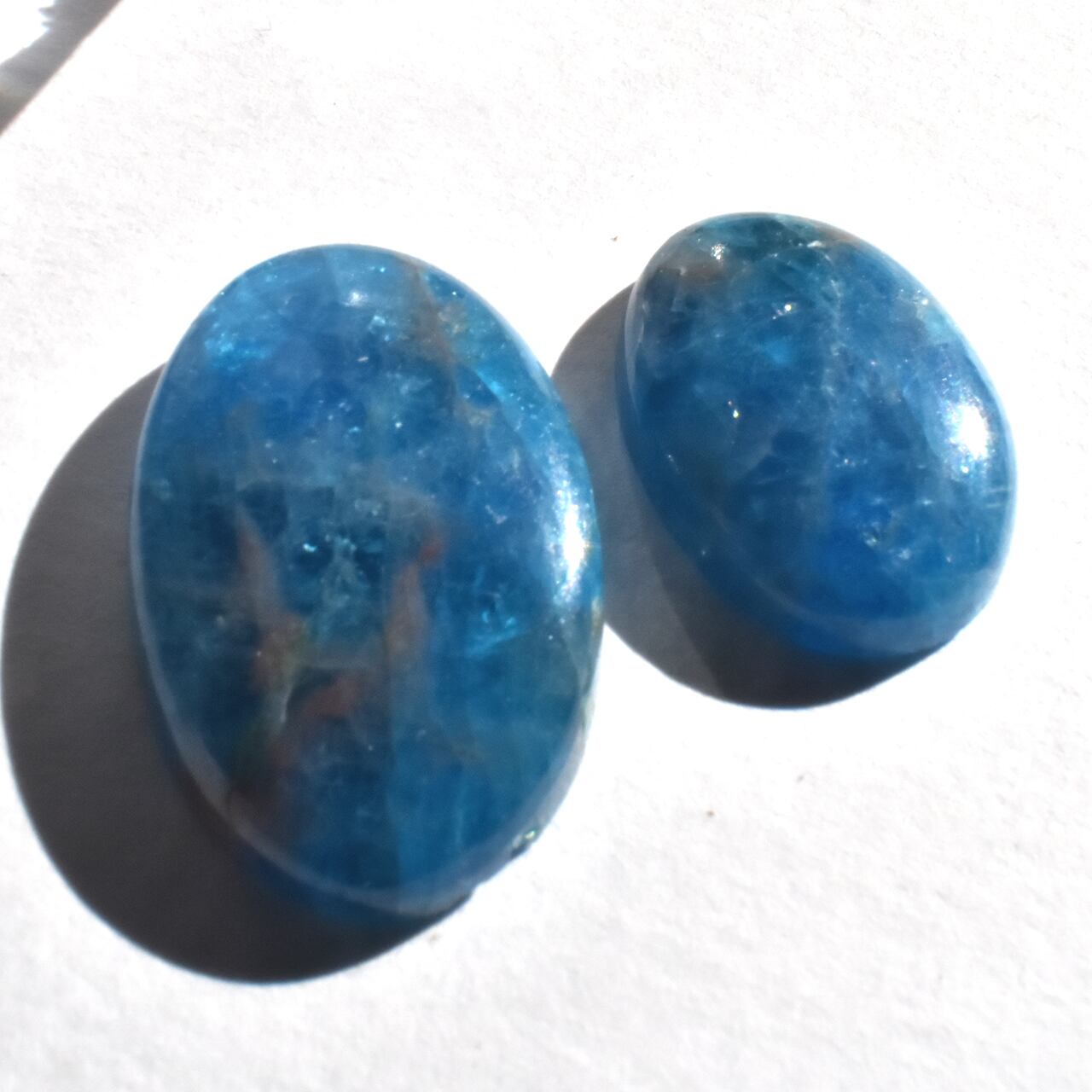 これらは、透き通るような青を宿す天然のブルーアパタイトのカボションです。
