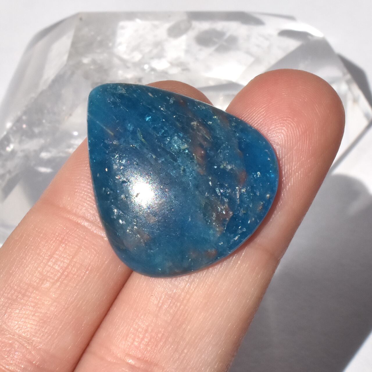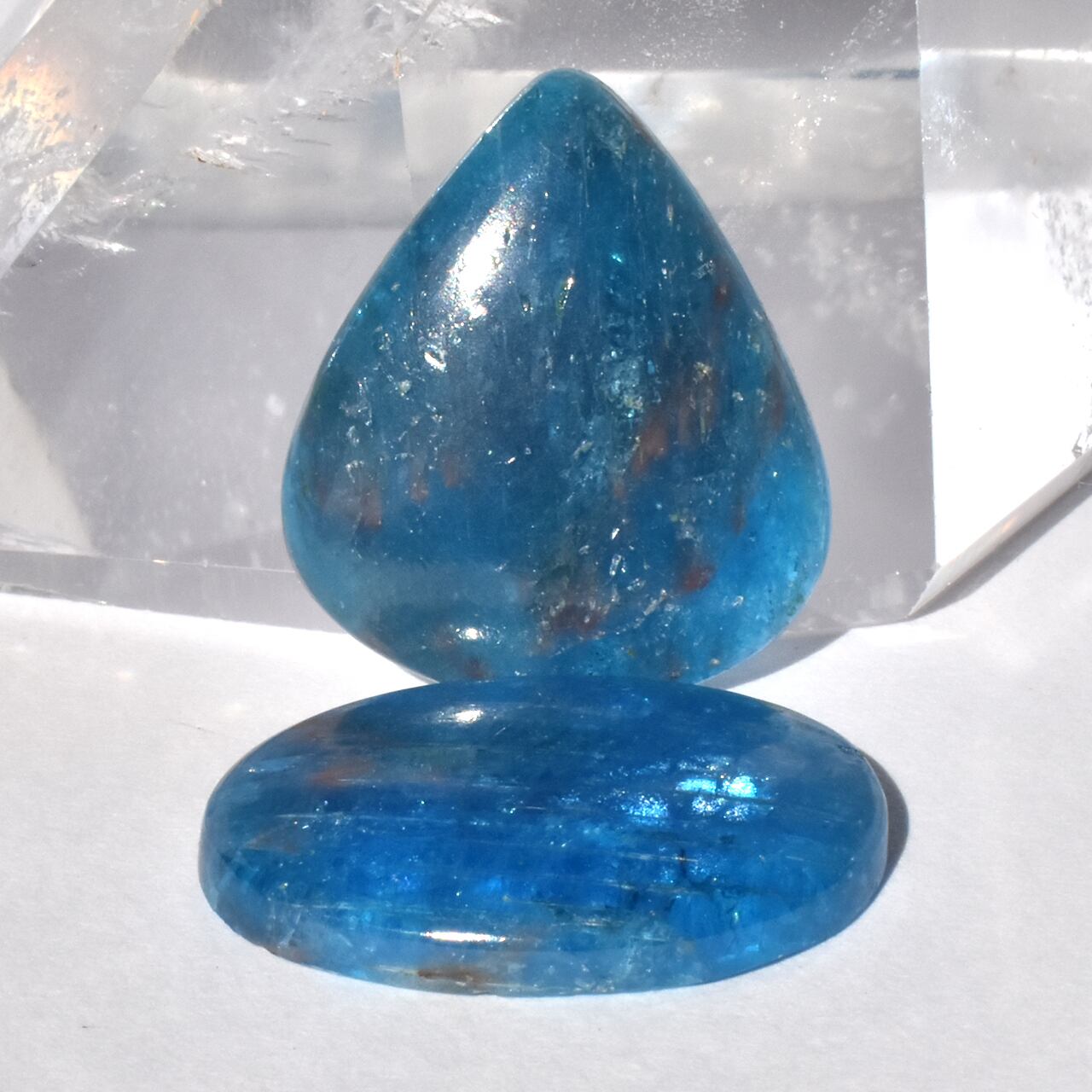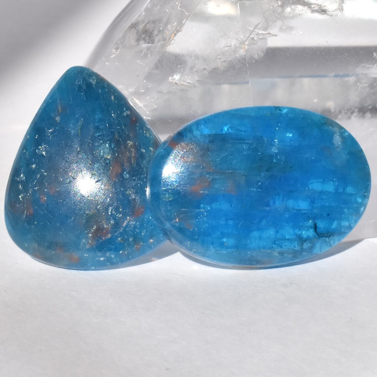 これらは、透き通るような青を宿す天然のブルーアパタイトのカボションです。