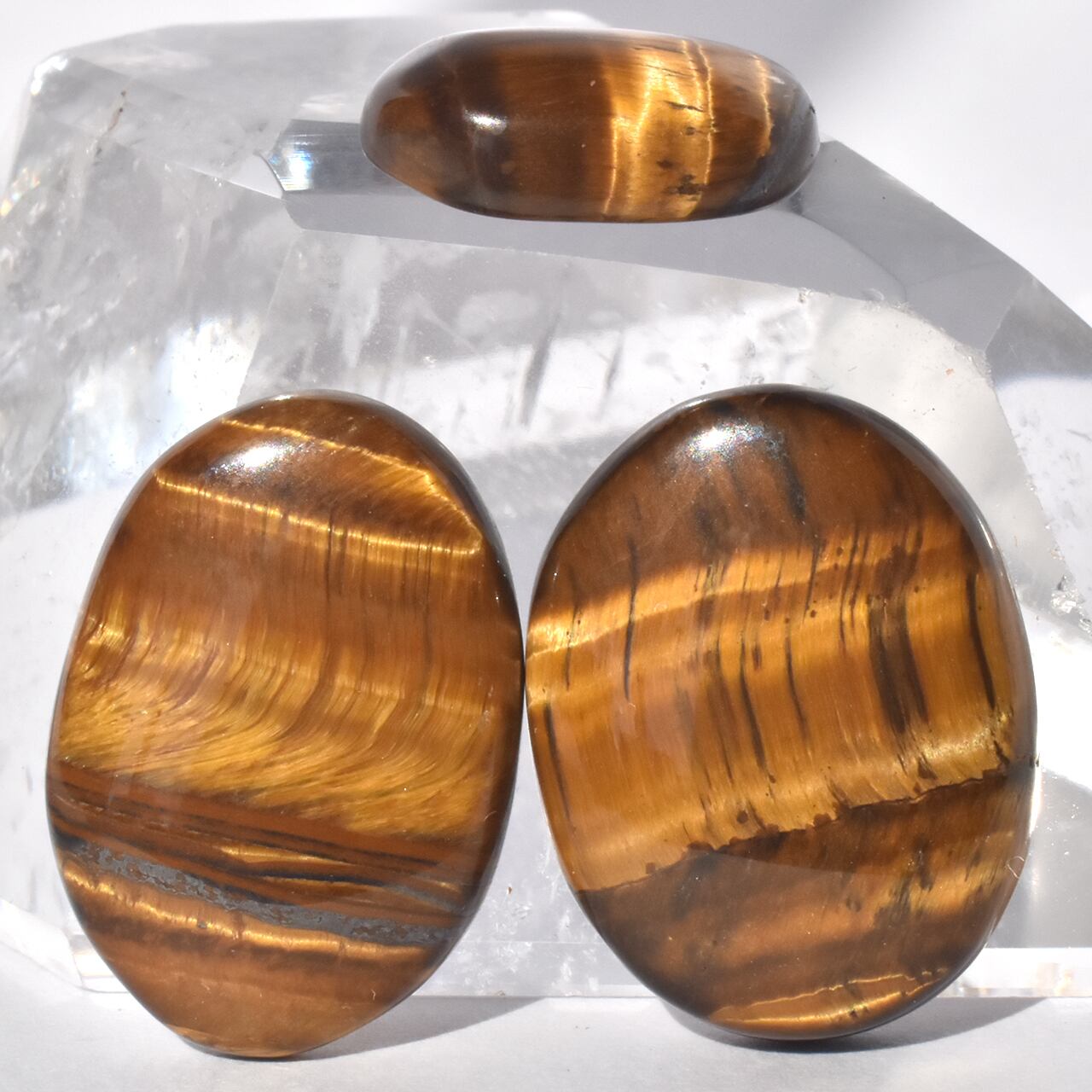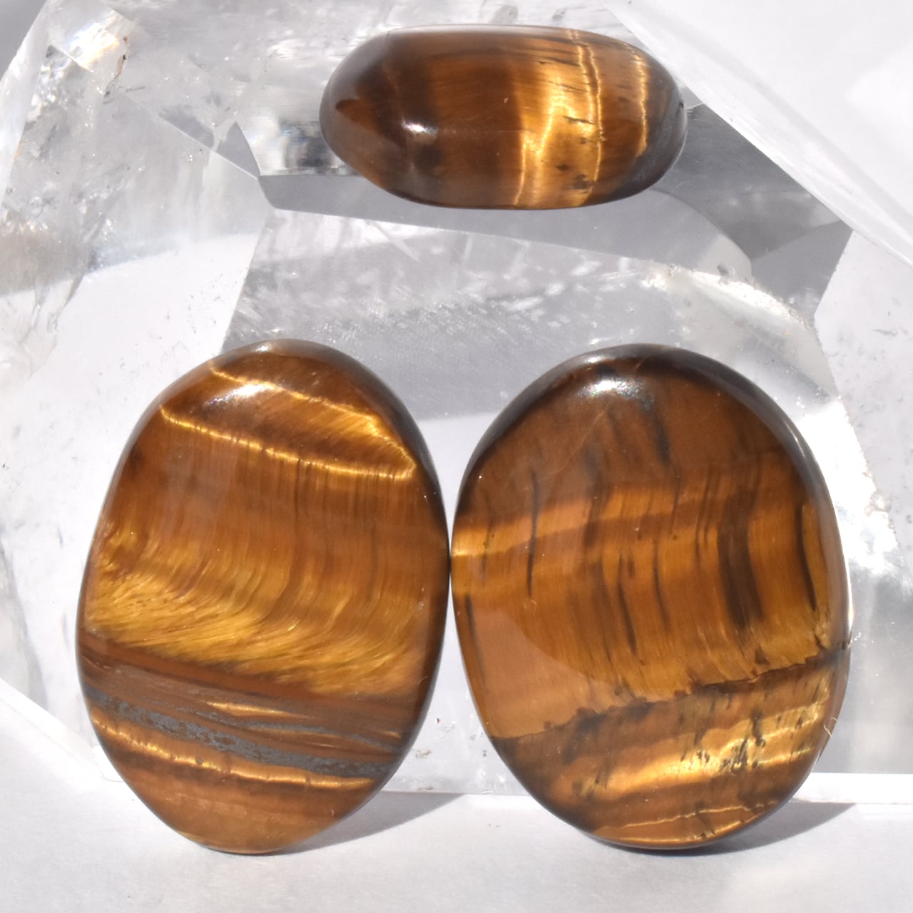 これらは、**天然のタイガーアイ(虎目石)**のカボションです。
