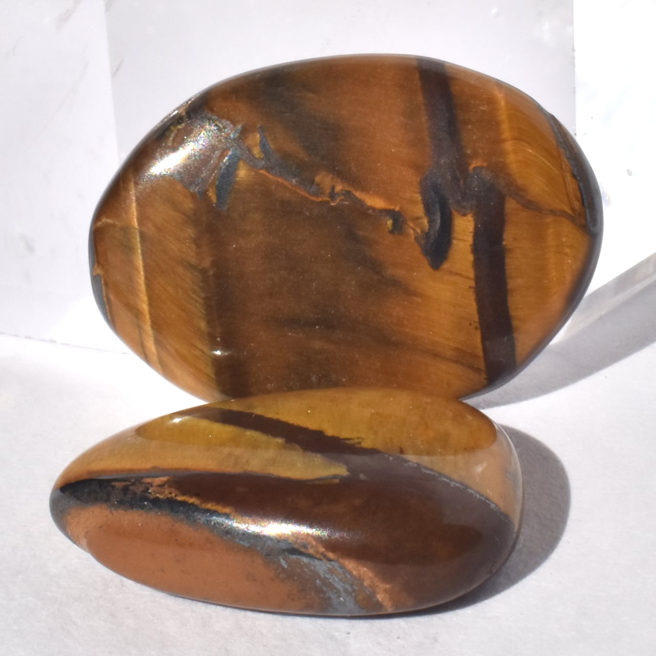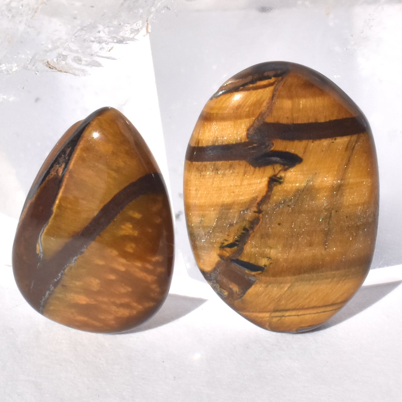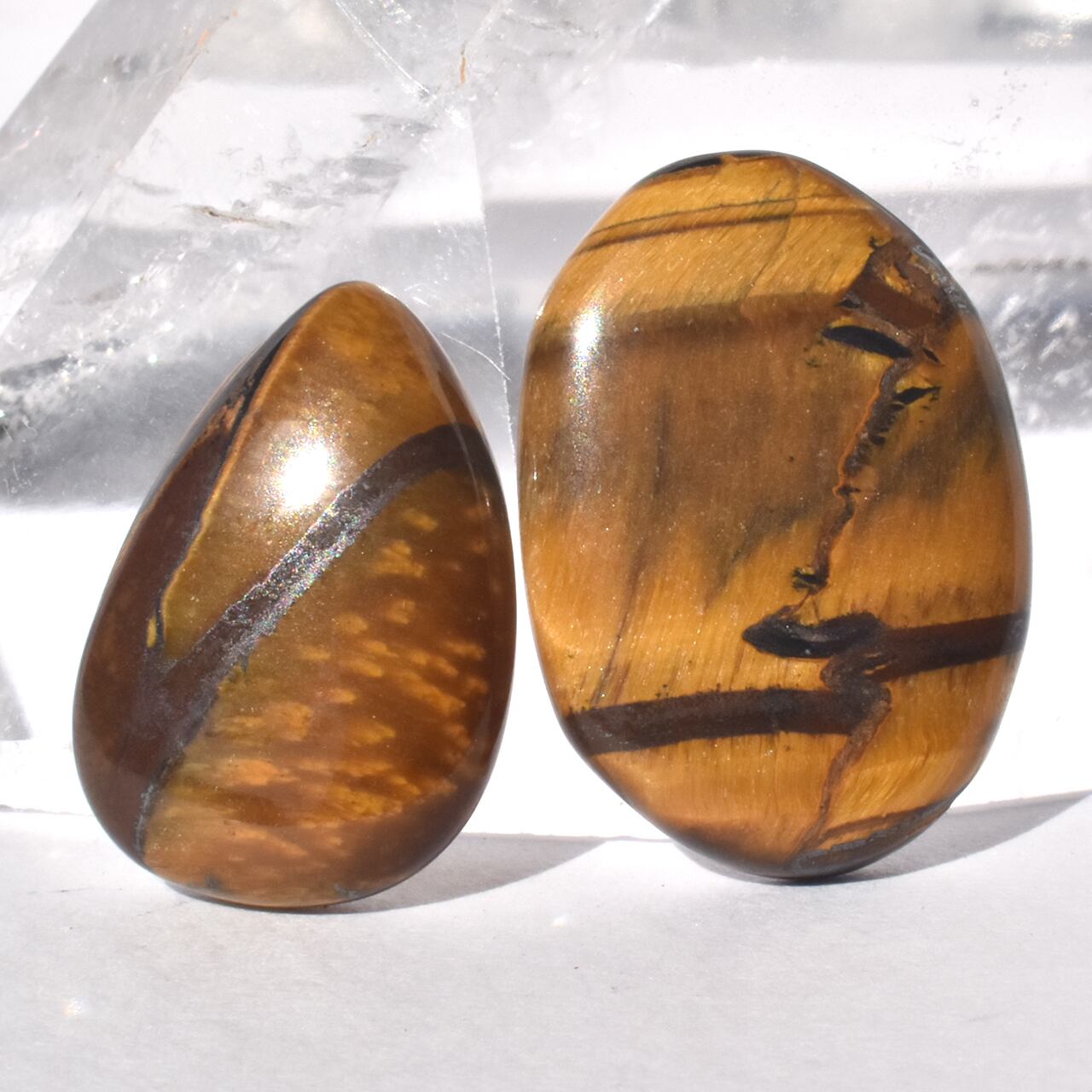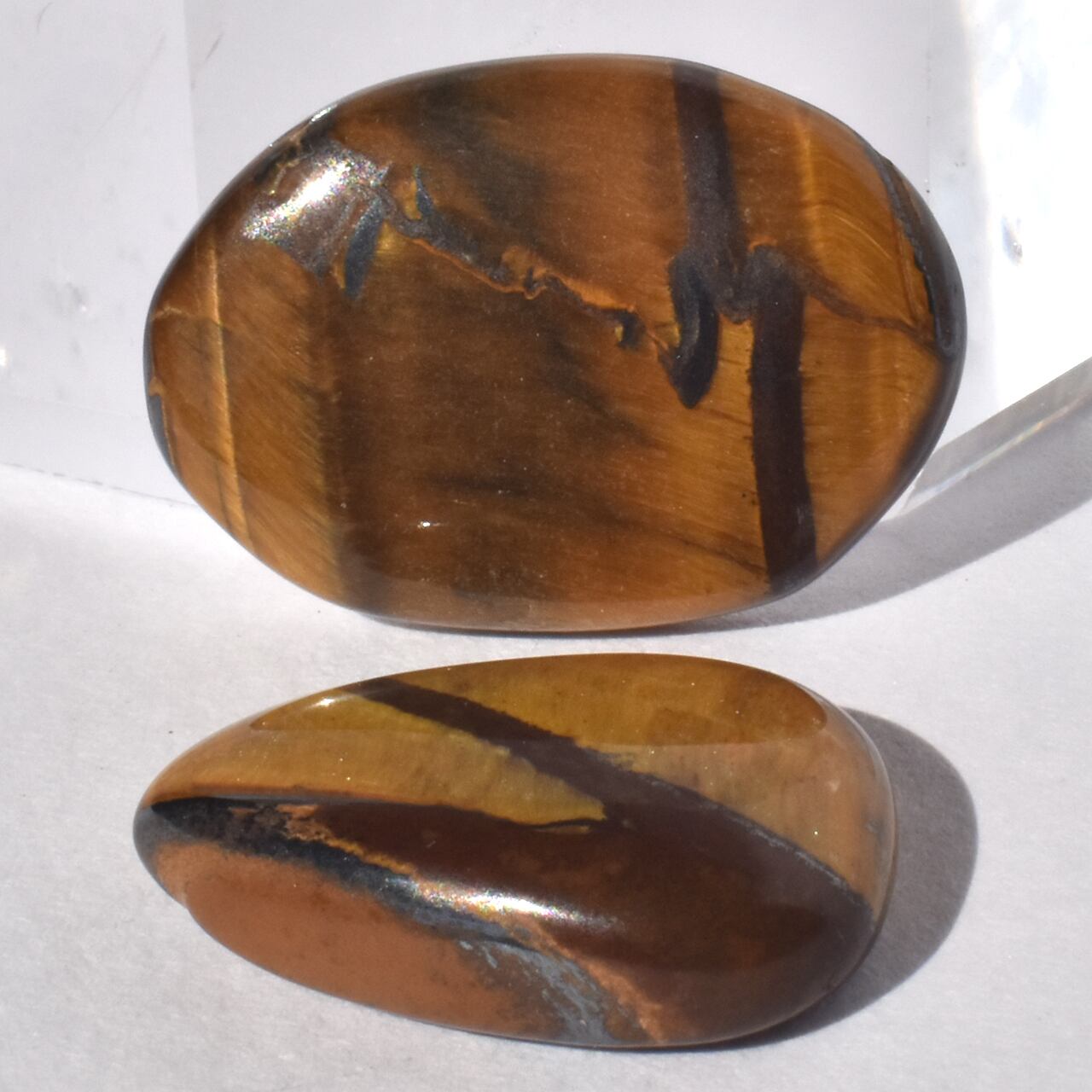 これらは、**天然のタイガーアイ(虎目石)**のカボションです。