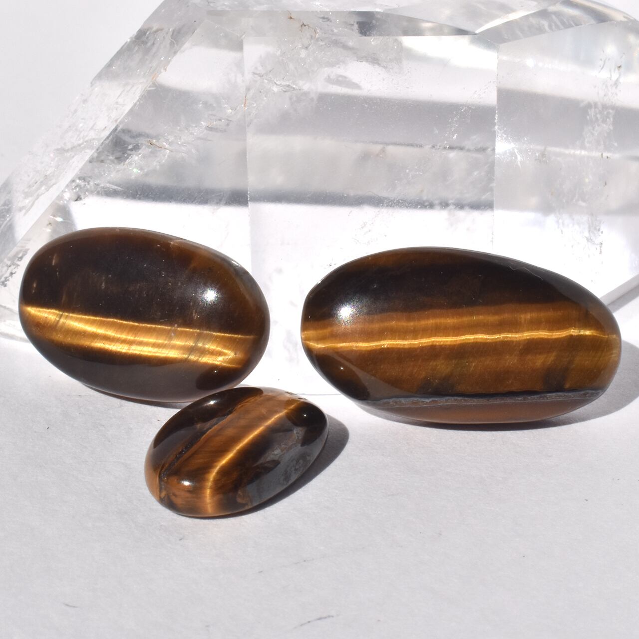 これらは、**天然のタイガーアイ(虎目石)**のカボションです。