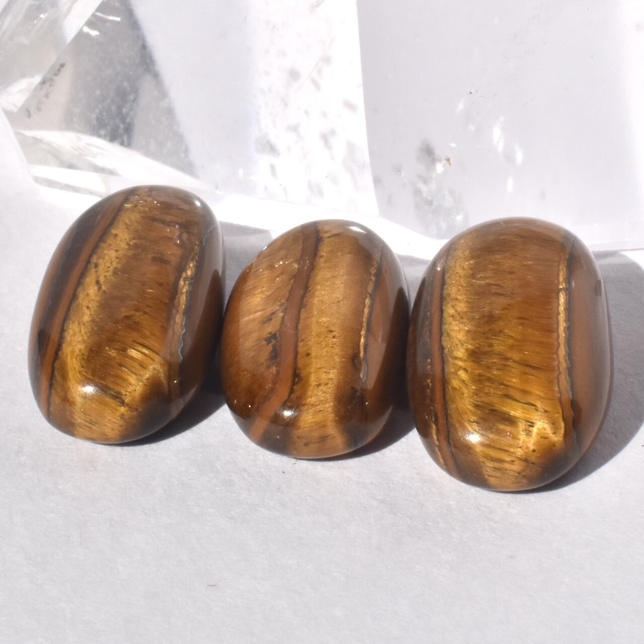 これらは、**天然のタイガーアイ(虎目石)**のカボションです。