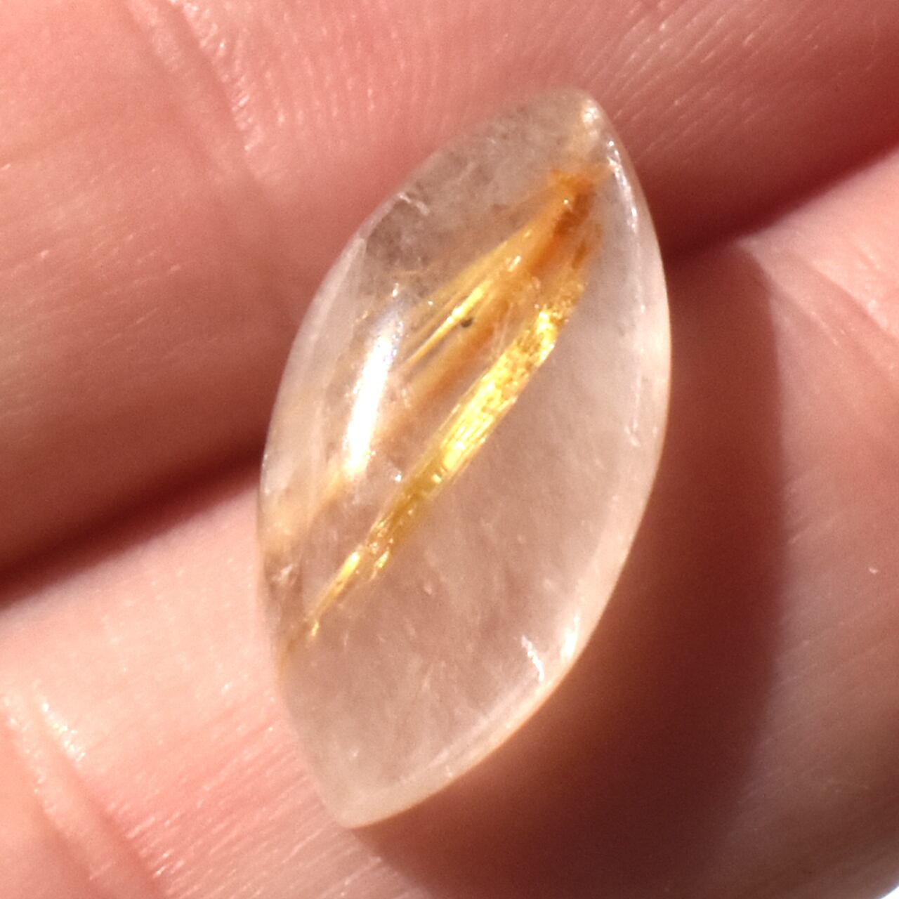 透明な水晶の中に、金の糸のようなルチルが静かに輝き、